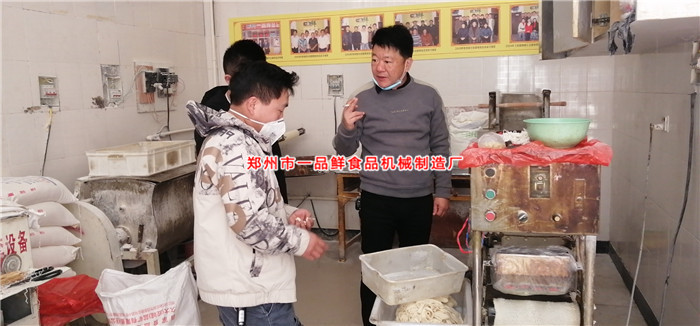 重慶賈老板,在西安做面食批發生意。在別家買的機器使用起來不是很滿意,見朋友面館使用一品鮮的機器生產出來的面食口感好,便前來一品鮮總部考察。經過現場考察,賈老板提出自己要求,定制全套多功能成型機器。一品鮮有多款多功能成型機,供廣大新老客戶選擇,如有特殊需要也可按您的要求定做,盡量滿足您的需求!